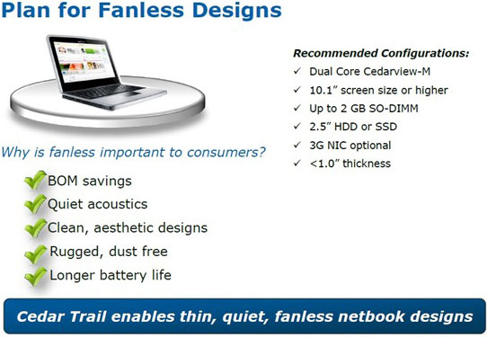 Последние данные говорят о том, что платформа Intel Atom Cedar Trail выйдет в сентябре этого года, на месяц ранее, чем ожидалось. Платформа состоит из процессора Cedarview (ядра x86 и графика на одном кристалле) и чипсета NM10, того же, что используется и сегодня в чипах Pine Trail. Однако в отличие от предшественников, применяемые в Cedar Trail процессоры будут производиться с соблюдением 32-нм производственного техпроцесса.