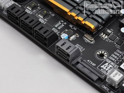 Кроме того, плата имеет два порта USB 3.0 (ещё два обеспечивает коннектор на материнской плате), гигабитный сетевой контроллер, два выхода eSATA, FireWire, 7.1-канальный звуковой контроллер и кнопки питания, перезагрузки и сброса CMOS.
