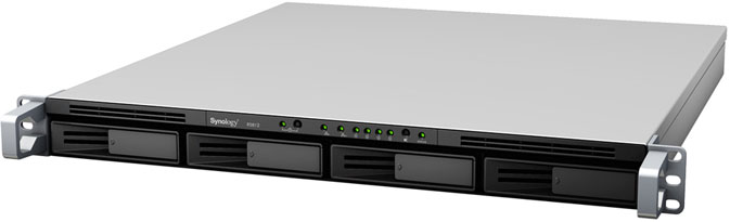 Компания Synology выпустила пару NAS-серверов в стоечном исполнении: масштабируемый 4-дисковый RackStation RS812 и компактный 2-дисковый RackStation RS212 (глубина 30 см). Модуль расширения Synology RX410 позволяет устанавливать в сетевой накопитель RS812 до 8 жестких дисков.