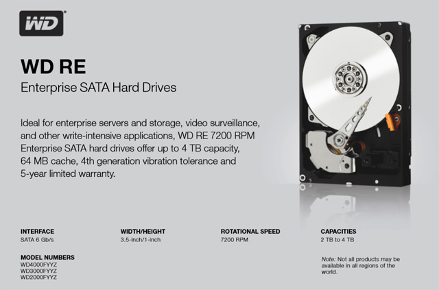 Производитель жестких дисков Western Digital сегодня анонсировал 3,5-дюймовый жесткий диск емкостью 4 терабайта. Новый накопитель доступен в версии для интерфейсов SATA или SAS. Производитель заявляет, что новинка оптимизирована для работы в бизнес-сфере, в частности, в серверах хранения, корпоративных рабочих станциях и в других сферах.