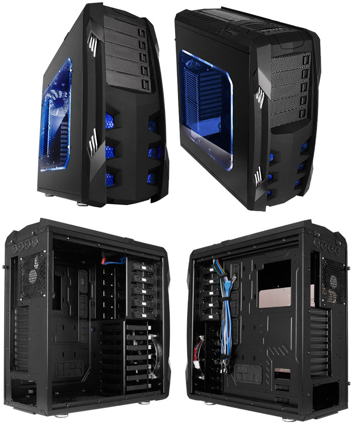 Дебютант с габаритами 510 х 246 х 545 мм предлагается в чёрном исполнении снаружи и внутри, снабжён голубой светодиодной подсветкой и имеет большое прозрачное окно на боковой стенке. Он совместим с платами стандартов XL-ATX, ATX, Micro-ATX, Mini-ITX, Flex ATX, SSICEB и SSIEEB, обладает десятью слотами расширения, оборудован пятью внешними 5,25-дюймовыми отсеками и располагает семью внутренними посадочными местами для 3,5/2,5-дюймовых накопителей. Модель изначально укомплектована одним 200-миллиметровым фронтальным и одним 140-миллиметровым тыловым вентиляторами. Опционально можно добавить два 120/140-миллиметровых «пропеллера» либо один 200-миллиметровый кулер на верхнюю крышку, а также ещё пару 120-миллиметровых «опахал» на боковую стенку. Управлять скоростью вращения трёх вентиляторов можно при помощи интегрированного контроллера. Кроме того, реализована возможность применения системы водяного охлаждения, для прокладки шлангов которой на задней стенке предусмотрены специальные отверстия. Что же касается набора выведенных наружу интерфейсов, то он состоит из дуэта портов USB 3.0, двух портов USB 2.0, а также гнёзд для подключения наушников и микрофона. Продажи описанного выше продукта в США и Канаде стартуют с середины текущего месяца по рекомендованной розничной цене $130.