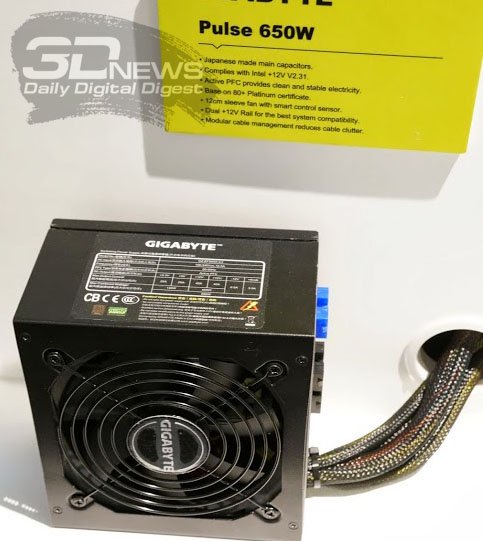 Среди множества продуктов на стенде компании GIGABYTE Technology интерес наших корреспондентов привлекли также новые линейки блоков питания. В экспозиции представлены серии Pulse и Sumo Platinum.