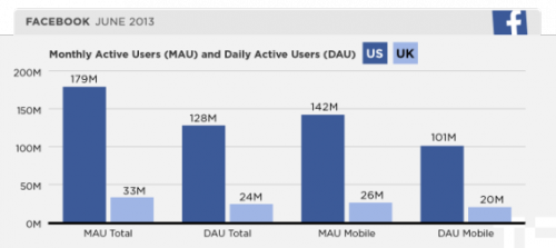 Ранее представители Facebook избегали точной сегментации аудитории в своих отчётах, предпочитая не делить аудиторию мобильных пользователей по регионам. Месячная аудитория мобильных пользователей Facebook в сентябре 2013 года составила 874 млн. человек по всему миру, а дневная — приближалась к 507 млн. человек. Общая аудитория пользователей Facebook (включая десктоп) по всему миру на тот момент составляла 1,19 млрд. человек.
