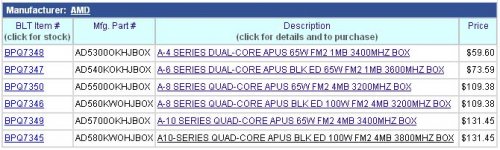 Как известно, на 4-й квартал текущего года запланировано появление ускоренных процессорных элементов Trinity компании AMD для настольных ПК. Их спецификации освящались в прессе уже не раз, чего нельзя сказать об их стоимости. Наконец, и над этим вопросом приподнята завеса тайны, благодаря одному из онлайн-магазинов электроники, расположенному в США. На его веб-сайте появилось возможность предварительного заказа шести моделей APU Trinity.