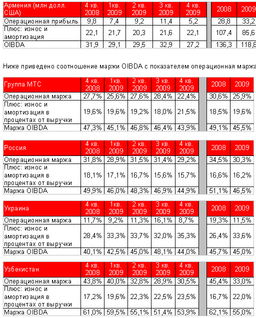 Приложения к пресс-релизу по финансовым результатам ОАО «МТС» за четвертый квартал и 2009 года