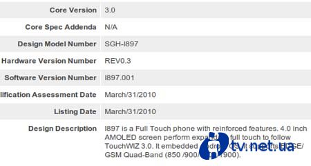Является ли Samsung I897 самостоятельной моделью или же это региональная версия Galaxy S пока не ясно, поскольку никаких подробных сведений и изображений аппарата сайт Bluetooth SIG не предоставляет.