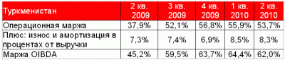 Во 2 квартале 2010 г. OIBDA выросла на 20% за квартал и 13% за год, превысив 1 млрд. грн. Маржа OIBDA увеличилась на 3.3 п.п. по сравнению с предыдущим кварталом и составила 46,8%.