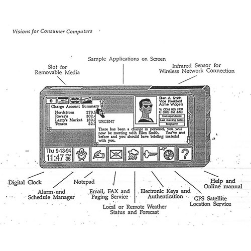Бывший технический директор Microsoft Натан Мирволд заявил, что показывал Биллу Гейтсу прототип смартфона, который мог бы стать аналогом современного iPhone, еще в 1991 году. В представленных главе софтверного гиганта документах описывалось устройство, представляющее собой «цифровой бумажник», который сочетал бы в себе свойства телефона, адресной книги, блокнота, плеера и т. д.