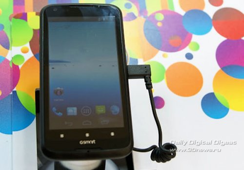 Также на стенде компании можно было увидеть последний смартфон, который называется GSmart G1362. Аппарат работает под управлением операционной системы Android 4.0 и оснащается 2-ядерным 1,2-ГГц процессором, 5-Мп камерой, 4,3-дюймовым экраном с разрешением 480x854, встроенным 4-Гбайт накопителем и 512 Мбайт оперативной памяти.
