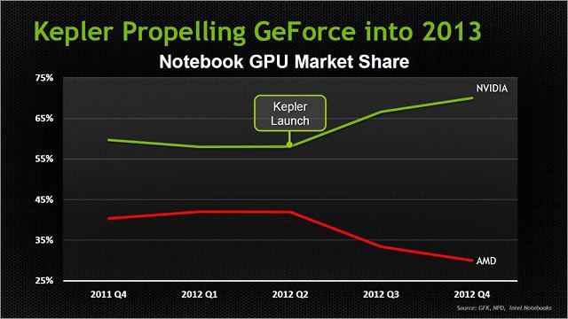 Компания NVIDIA официально представила четыре видеокарты на архитектуре Kepler из новой серии GeForce GTX 700M для ноутбуков: это самый быстрый в мире мобильный графический адаптер GeForce GTX 780M и высокопроизводительные ускорители GeForce GTX 770M/765M/760M.