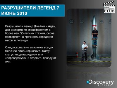 Discovery Communications (NASDAQ: DISCA, DISCB, DISCK) - это ведущая медиа-компания, в фокусе которой находятся события реальной жизни. Вещание DCI охватывает более 170 стран мира с общим числом пользователей 1,5 млрд. человек. Discovery дает людям возможность исследовать мир и совершать удивительные открытия с помощью 100 с лишним сетей по всему миру, которые транслируют такие каналы как Discovery Channel, Animal Planet, Discovery Science, Discovery HD. Кроме того, компания предлагает образовательные продукты и услуги, а также цифровые медиа-ресурсы,включая HowStuffWorks.com. В 105 странах Европы, Африки и Ближнего Востока 13 каналов семейства Discovery вещают на 24 языках для 217 млн.подписчиков.