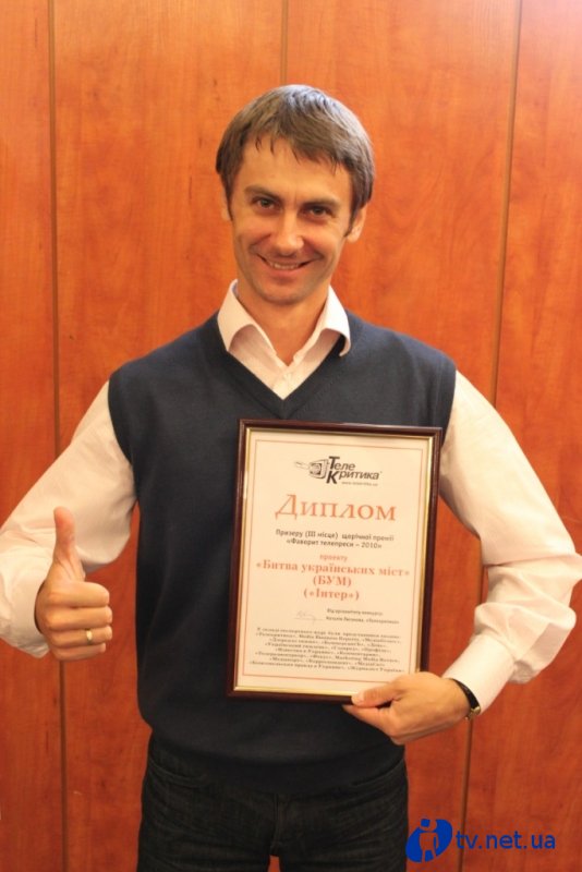 – Откровенно говоря, мне не привычно получать какие-то призы и награды вне спорта. Раньше я думал, что меня как Олимпийского чемпиона уже вряд ли можно чем-то удивить, а тем более какими-то соревнованиями или проектами. Когда я попал на «Битву українських міст», честно скажу, я прозрел, – признался во время награждения Валерий Гончаров. – И я очень рад, что проект не остался незамеченным, и получил награду от телекритиков и телезрителей. Потому что этот проект не просто яркое и захватывающее зрелище, он действительно социально важен. Он объединил всю Украину, всех участников и я знаю точно, что в жизни многих БУМовцев после этого проекта случились какие-то положительные перемены – кто-то успешно поменял работу, кто-то устроил личную жизнь… Я рад, что канал «Интер» и проект «Битва українських міст» получают эту награду. Я благодарю всех за подаренное зрелище. Я благодарю издание «Телекритика» за эту премию, всех, кто голосовал за «БУМ», и все средства массовой информации, которые несут в массы важную информацию.
