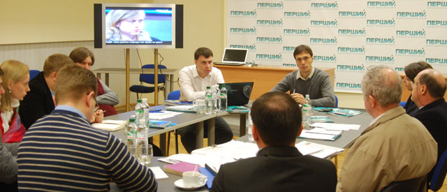На рабочей встрече генеральный директор НТКУ Егор Бенкендорф со своими заместителями и вице-президент EBU Клаудио Каппони с ассистентом генерального директора EBU Дэвидом Льюисом обсуждали переход НТКУ в статус общественного вещателя.