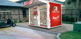 Жители техасского города Форт-Уэрт (США) отовариваются в Shop24, это сеть полностью автоматизированных и автономных роботизированных магазинов. Shop24 — не простой магазин с продавщицей и прилавком и не мини-маркет, это скорее нечто среднее между киоском и торговым автоматом. Высота машины составляет более 2,7 метра, в ассортименте есть более 200 товаров, каждый весит от пары десятков граммов до 3,5-4 килограммов. Автомат принимает кредитные и дебетовые карты, наличные деньги, а также карты программы SNAP (электронные талоны на питание). Ничего не сообщается о том, как будет осуществляться продажа товаров только для совершеннолетних покупателей. Может быть, такие покупки можно будет совершать только по кредитке или только по предъявлении документа.