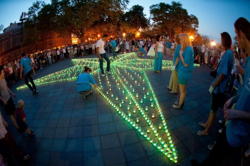 В День Победы сотни украинцев присоединились к сотрудникам "Киевстар" и зажгли свечи в память о днях войны. На главных площадях Одессы, Херсона Хмельницкого, Житомира, Чернигова, Харькова, Днепропетровска, Луганска, Донецка, и Симферополя зажглись "Звезды Памяти", состоящие 1418 свечей-лампад. Одесситы пришли 9 мая на Думскую площадь, где вместе с волонтерами "Киевстар" создали "Звезду Памяти". Весь вечер звучали песни военных лет, воспоминания и теплые слова благодарности в адрес ветеранов.