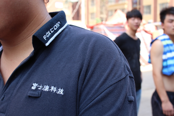 Работники сборочных линий Foxconn используют в качестве спецодежды подобные рубашки