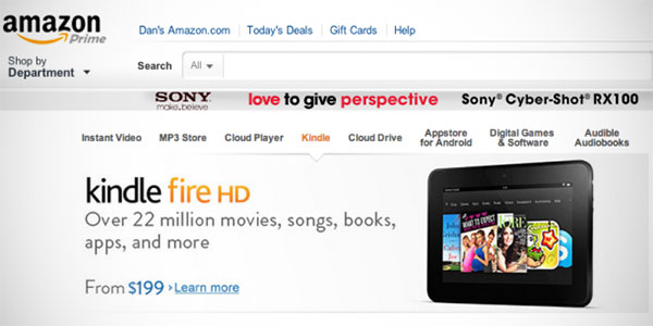 Глава Amazon Джеф Безос на запуске Kindle в сентябре 2012 года. Надпись на экране — «Мы хотим зарабатывать, когда люди используют наши устройства, а не когда они их покупают». Прибыль от продажи устройства для Amazon второстепенна — главное заполучить лояльных пользователей, предложив им такие условия, которые конкурентам весьма сложно превзойти. Компания в этом году, согласно прогнозам, получит доходов в размере $62 миллиардов, а в 2015 году продажи Amazon могут достичь отметки в $100 млрд. Какую долю из $62 млрд составляет продажа устройств Kindle и сопутствующих цифровых материалов? Amazon не предоставляет точных данных на этот счёт. В третьем квартале 2012 года во время отчётной конференции Джеф Безос поделился некоторыми данными: «Наш подход работает — 200-долларовый Kindle Fire HD является самым продаваемыми продуктом на Amazon по всему миру. Невероятно, но это справедливо, даже если считать по числу проданных единиц. Два других наиболее продаваемых продуктов в мире — наши книжки Kindle Paperwhite и Kindle за $70. Каждых из этих устройств мы продаём больше, чем экземпляров находящейся на четвёртом месте последней книги трилогии „Пятьдесят оттенков серого“ (Fifty Shades of Grey)». Чтобы представить масштаб, следует сказать, что эта трилогия разошлась тиражом более чем в 30 миллионов копий, но неясно, какая часть была продана магазином Amazon. Apple при этом продала уже 100 млн iPad, включая 13 млн в прошлом квартале. Если говорить о статистике IBM Digital Analytics Benchmark, собранной во время распродаж в США, приуроченных к Чёрной пятнице, то использование Kindle пока невелико по сравнению с iPad. Из всего трафика в этот период 24% генерировали мобильные устройства (11% — планшеты). При этом, если говорить только о планшетах, то 88% посещений сайтов происходило с iPad, а лишь 5,5% — с Kindle и Barnes & Noble Nook.