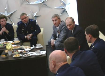В зале совещаний отряда космонавтов руководитель Роскосмоса А.Н. Перминов доложил главе Правительства РФ ситуацию с нынешним состоянием и перспективами развития тренажерной и материальной базы ЦПК и социальной сферы Звездного городка. В совещании принимали также участие заместитель Председателя Правительства РФ С.Б. Иванов, губернатор Московской области Б.В. Громов, глава администрации Звездного городка А.А. Волков, статс-секретарь – заместитель руководителя Роскосмоса В.А. Давыдов, начальник управления Роскосмоса А.Б. Краснов.