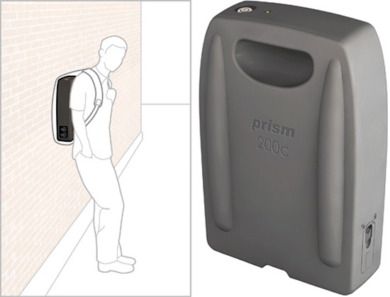 Prism 200c – это широкополосная радиолокационная система, которая была специально создана для ношения в сумке или рюкзаке. Идея заключается в том, чтобы человек мог стоять, не привлекая к себе внимания, и при помощи устройства узнавать, что скрыто за той или иной стеной. Радар автоматически посылает все изображения на ноутбук или смартфон, а вы только делаете вид, будто играете или листаете интернет-страницы. Никто не догадается, что в этот самый момент вы тайно сканируете то или иное здание.