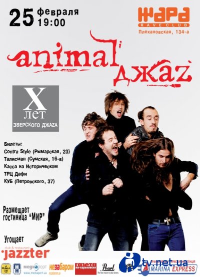 25 февраля 2011 года в Харькове в клубе «Жара» состоится концерт группы «Animal ДжаZ». Концерт состоится в рамках юбилейного тура группы «10 лет зверского джаза».