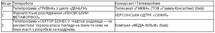 Переможець: • HUNGARIAN TELEVISION (Будапешт) – за телепрограму «Вивчаймо українську мову»