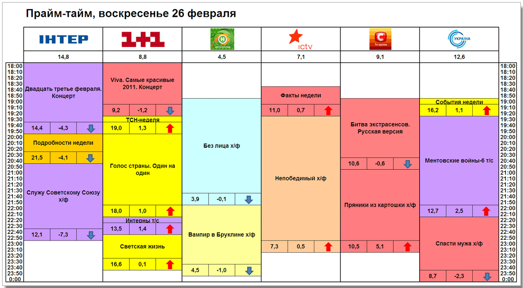 Телесмотрение, прайм-тайм 20 - 26 февраля 2012 года